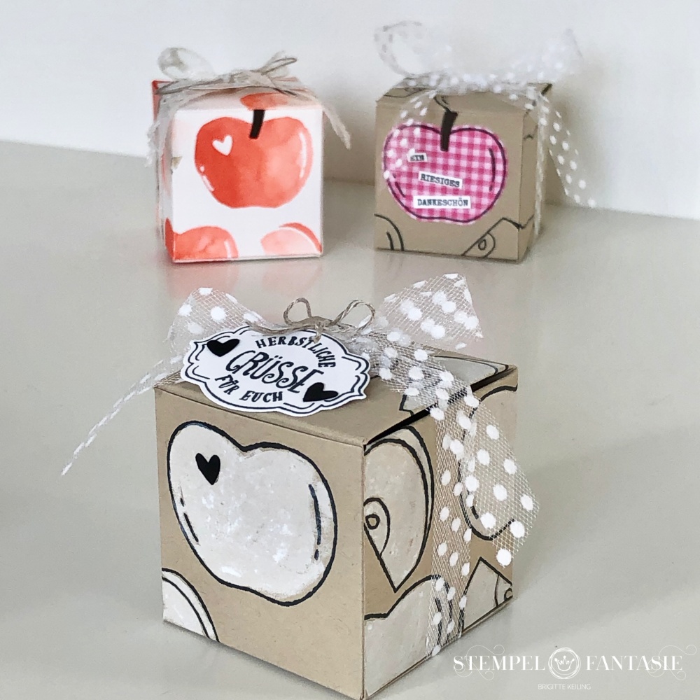 Bei dem letzten Workshop (to-go) zum Produktpaket „Ernte-Gruss-Fest“ stand recht schnell fest, dass ich diese Art von Box machen wollte. Wie aber gestalten? Gerade bei einem Workshop-to-go, wo ich das komplette Material mitschicke, muss ich darauf achten, dass die Teilnehmer auch alles haben, was sie für das Projekt benötigen, Schere und Kleber einmal ausgenommen. 😉 Das Produktset war im Preis enthalten und habe ich mitgeschickt.