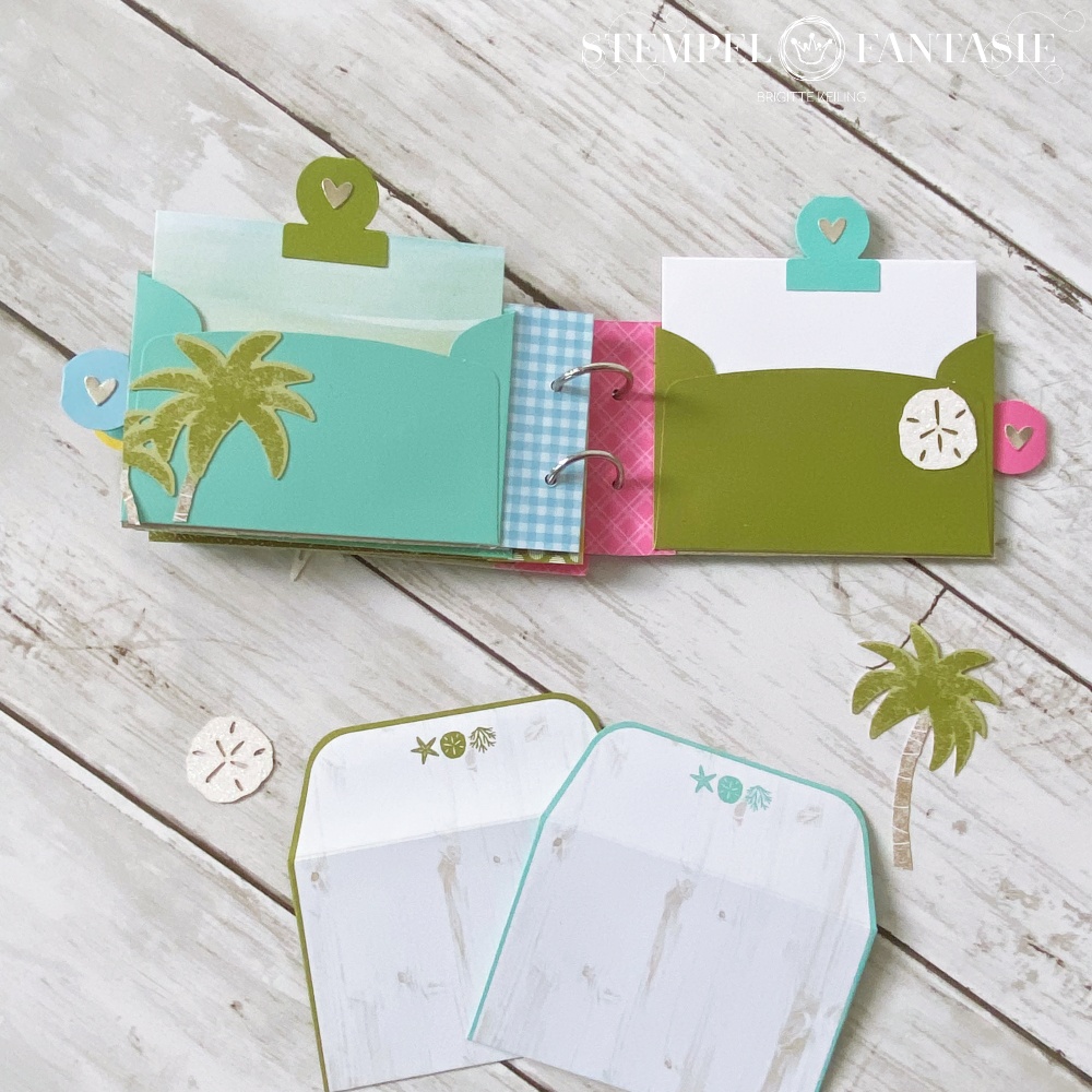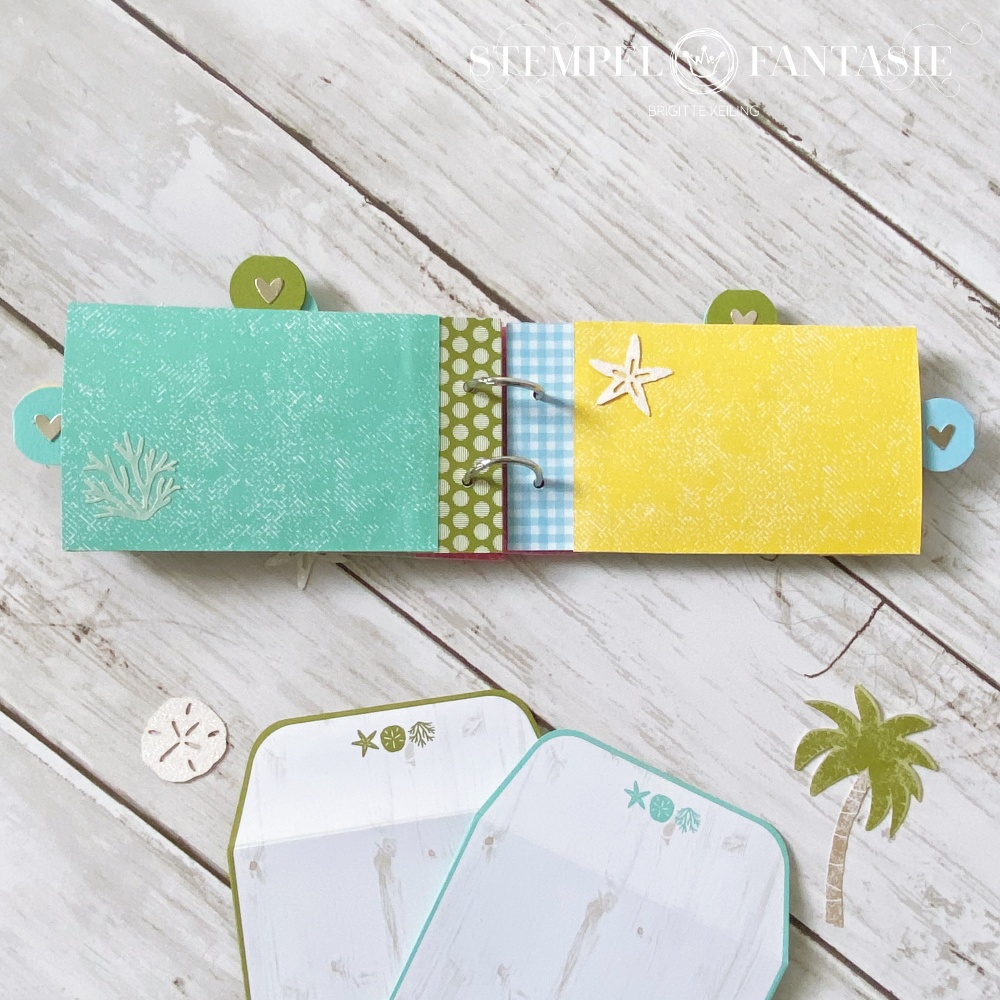Ich habe mal wieder ein Mini-Album gebastelt. Und zwar ein Sommer-Mini-Album! Mit den Farben vertreibt es die dunklen Wolken draußen! 🥰