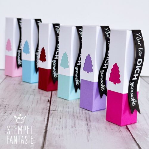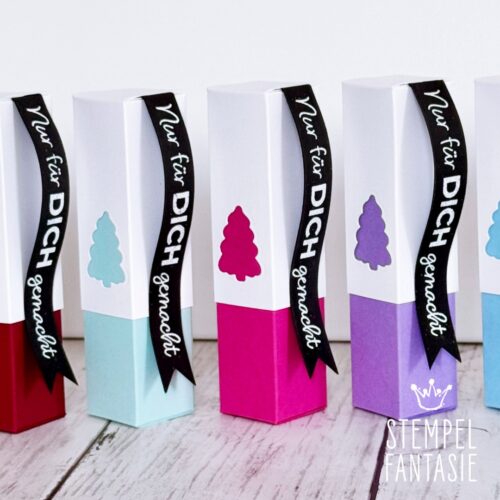 Ich habe knallige Farben verwendet. Du kannst die Box natürlich auch in klassischen Weihnachtsfarben gestalten.